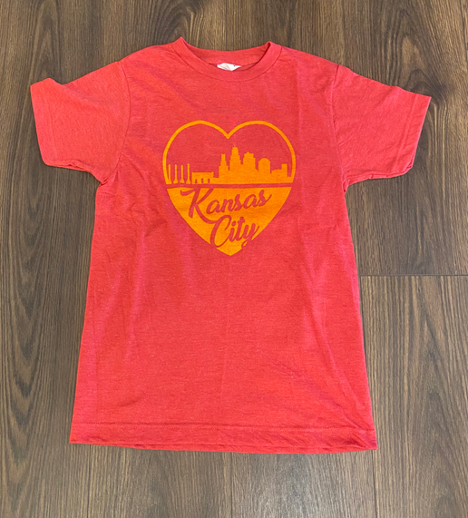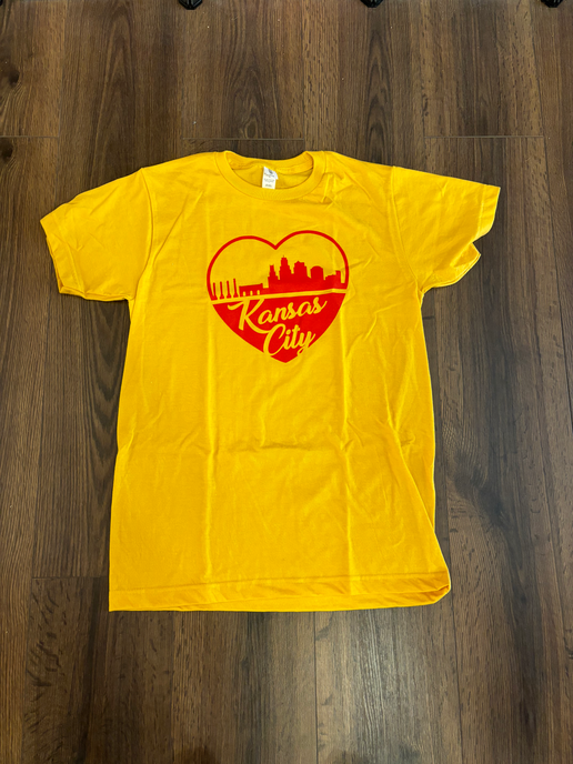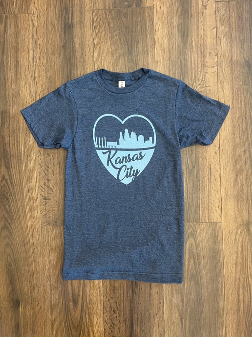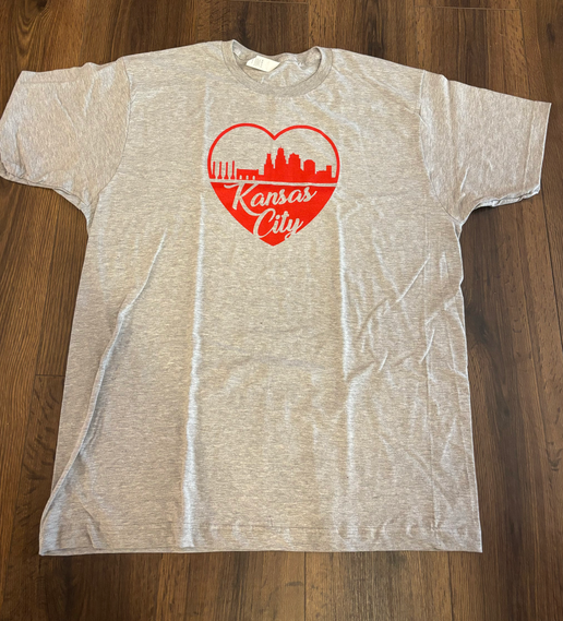 Join us in celebrating Kansas City's unique skyline and the heart that beats within it. Order your "KC Skyline" T-shirt today and wear it with pride, as a testament to your love for the city that defines us all. Embrace the spirit of Kansas City, and let your heart shine through in every step you take.